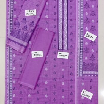 Printed Cotton AK Kasturi with Embroidered Neck on Shirt, Embroidered Trouser and Printed Lawn Dupatta.